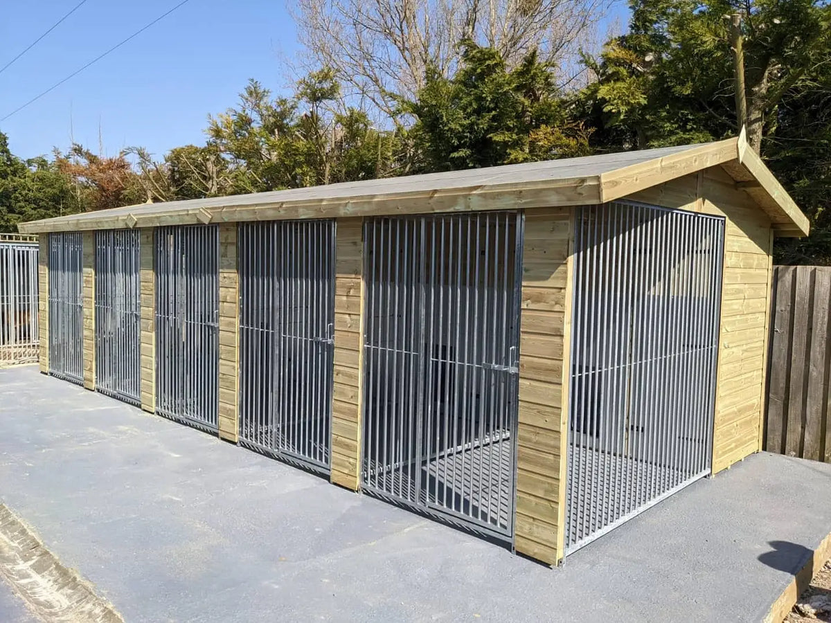 Our wooden five bay dog kennels include the following features.